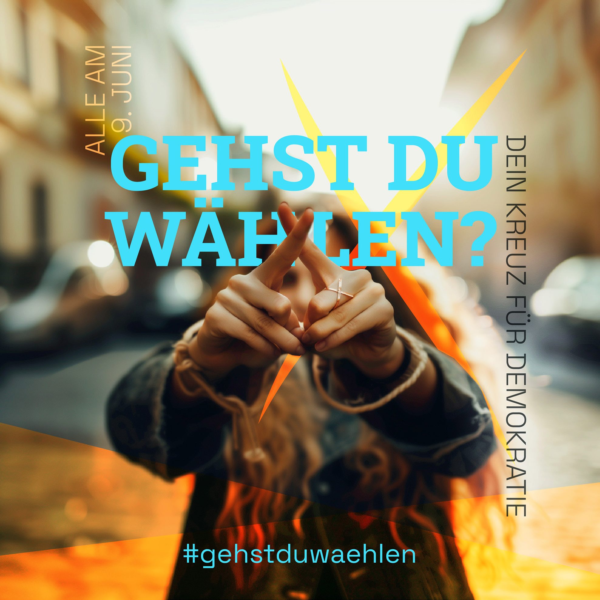 Seid dabei und teilt unseren Content auf Instagram, Facebook und Tiktok. Und sprecht die Leute an, fragt: "Gehst Du wählen?" Kommt miteinander ins Gespräch!